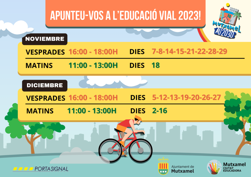 Durant els mesos de novembre i desembre la Regidoria de Sostenibilitat Ambiental ha organitzat uns tallers per a ensenyar a xiquets i xiquetes i joves pautes de mobilitat sostenible a més de les normes de circulació i seguretat per a circular amb bicicleta o patinet.