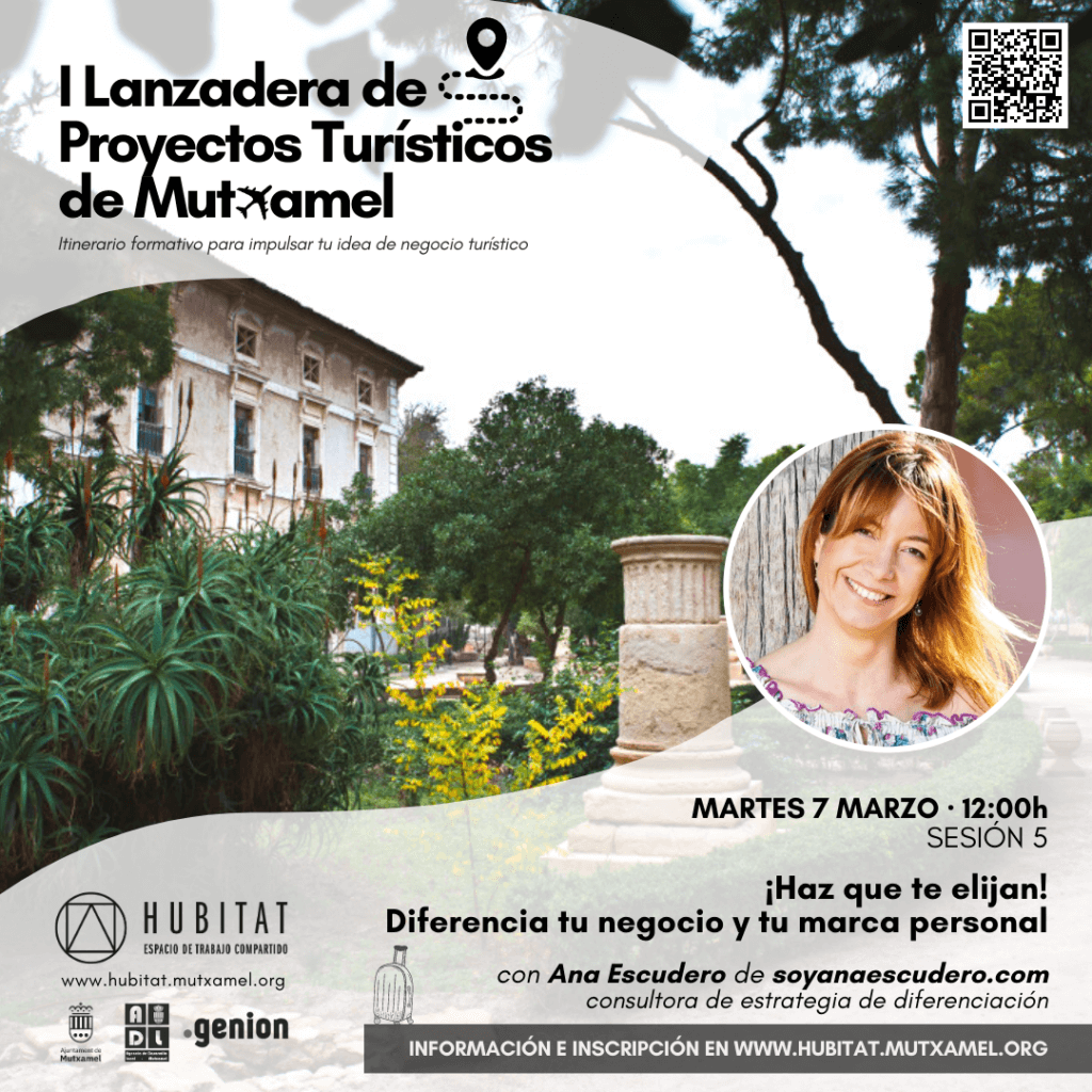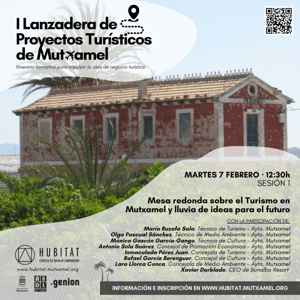 Entorn de la temàtica de ‘La Ciutat Emprenedora’, dimarts que ve, 7 de febrer, s’estrena l’agenda de 2023 amb la primera sessió de la Llançadora de Projectes Turístics de Mutxamel, una plataforma que funcionarà a manera d’itinerari formatiu, especialment creat per a impulsar l’inici d’activitats empresarials relacionades amb el turisme. Totes aquestes sessions, com és habitual en Hubitat, són d’accés lliure i gratuït.