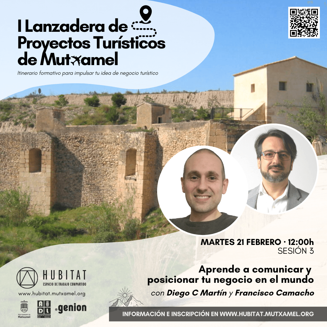 Hubitat, l’espai de treball compartit de titularitat pública de Mutxamel, dedica el primer trimestre de 2023 a l’emprenedoria orientada cap al sector turístic de la localitat. Entre febrer i març, Hubitat i l’Agència de Desenvolupament Local de Mutxamel han preparat una àmplia oferta d’esdeveniments gratuïts, englobats sota el paraigua de la I Llançadora de Projectes Turístics de Mutxamel.
