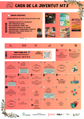 Des de la Regidoria de Joventut, us presentem la programació del mes de desembre. De les activitats previstes, destaquem: