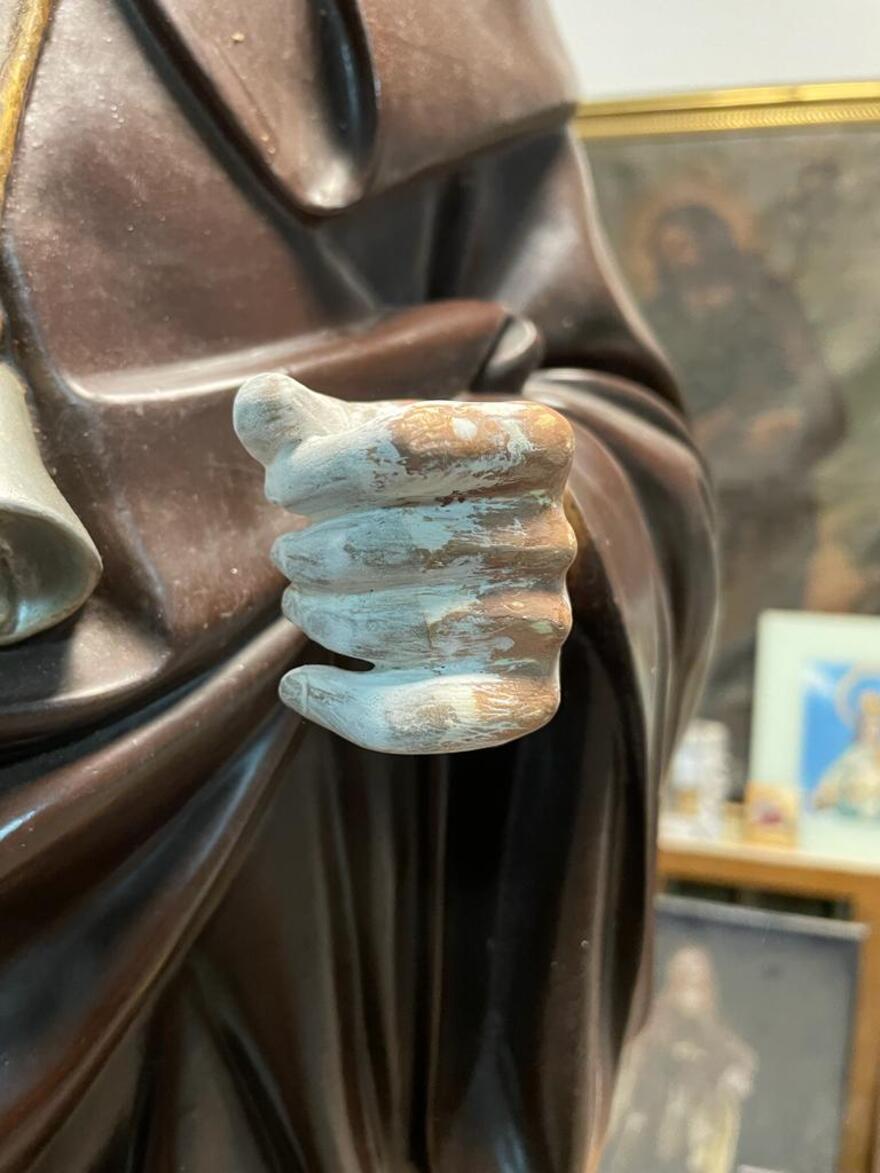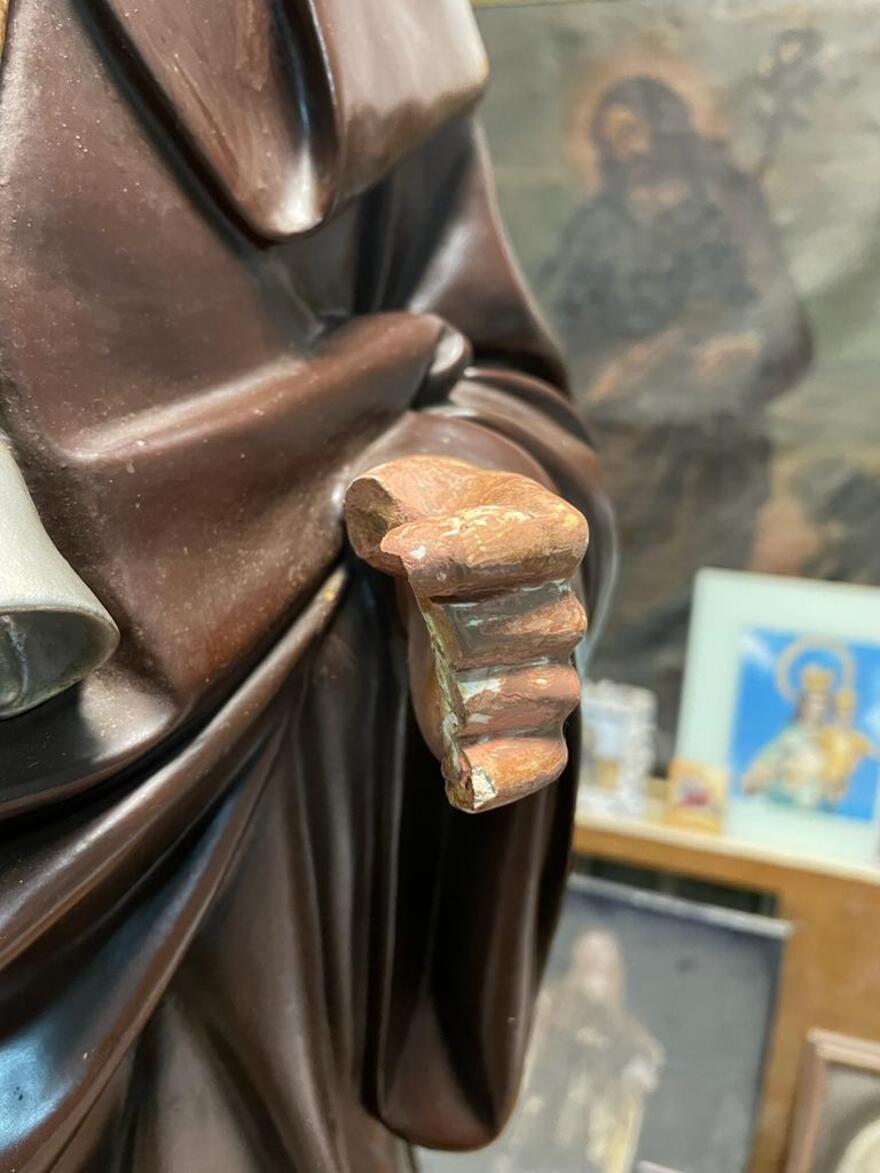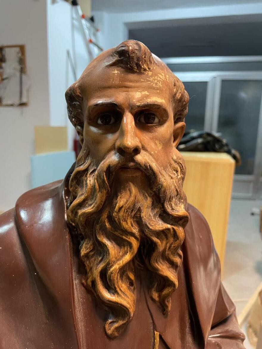 En cuanto a la imagen de Sant Antoni, se han eliminado las sucesivas capas de pintura que se fueron incorporando con el paso de los años.  Así como se han repuesto todos los faltantes, principalmente los dedos de una mano del santo y, de manera específica, la peana que estaba muy dañada y se ha restaurado por completo.