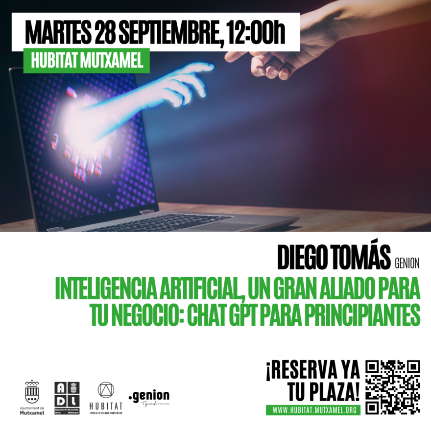 En esta sesión, Diego Tomás, experto en Inteligencia Artificial de la cooperativa Genion, presentará los fundamentos de la tecnología Chat GPT y cómo puede ser un gran aliado para potenciar tu negocio.