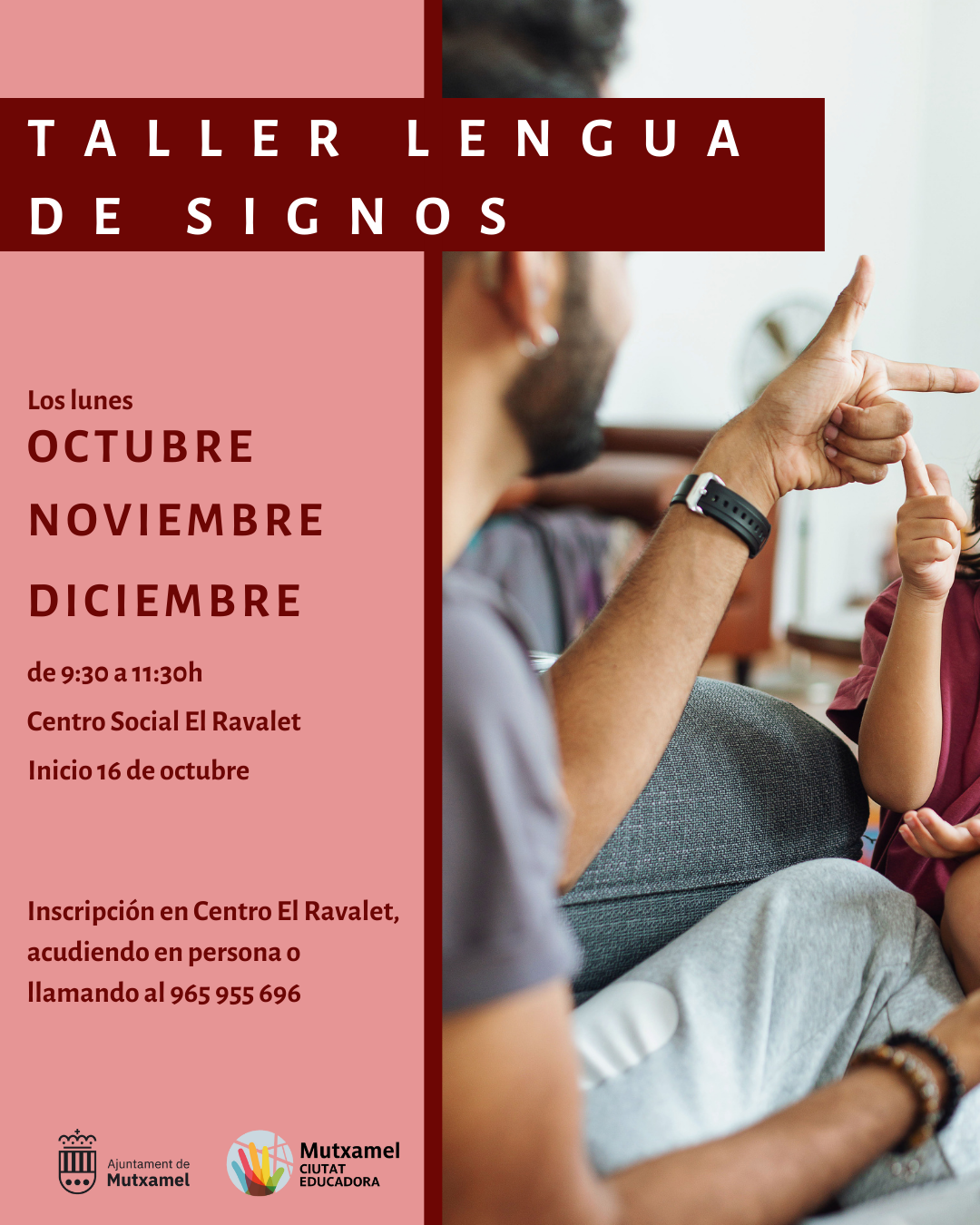 Inscripción en: Centro Social Ravalet, acudiendo en persona o llamando al 965 955 696.