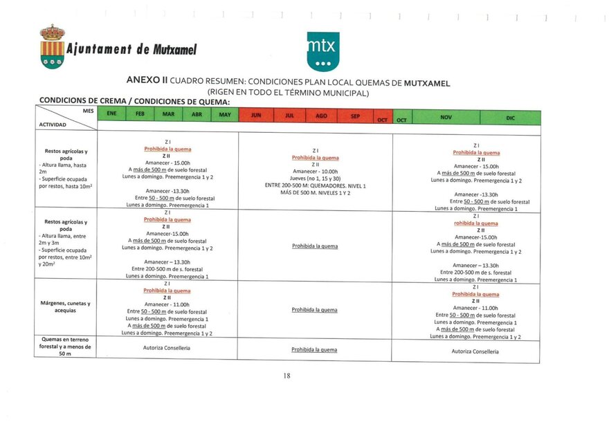 El próximo 16 de octubre se inicia el periodo de invierno recogido en el Plan Local de Quemas de Mutxamel.